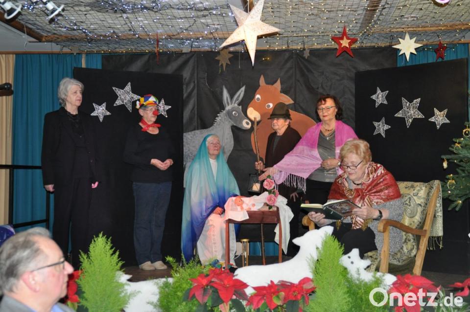 Neben Texten und Gedichten, vorgetragen von Else Kraus, Waltraud Voit, Renate Grasser und Winfried Bühner, war es zunächst der Nikolaus, der vor allem den Politikern die Leviten las, und dann alle ermunterte, trotz der vielen Missstände allerorts nicht zu resignieren, sondern als aktive Bürger die Gesellschaft zu gestalten und dem rechten Mob keine Chance zu geben. Mit zwei heiteren Sketchen sorgten die "MimOldies" für Schmunzeln: So war es der neugierige Sepperl, gespielt von Helga Schlosser, der seinen Vater (Axel Poy) mit ständigen Fragen zum trauten, hochheiligen Paar so nervt, dass er das Lied "Stille, Nacht" mit dem "O Tannenbaum" austauschen will. Im zweiten Sketch versuchte die Mutter (Jutta Wolfrath) vergeblich eine stimmungsvolle Atmosphäre zu schaffen; zu sehr war der Sohn Alfonserl (Waltraut Heimerl) auf seine Geschenke fixiert und der Vater (Erni Liebwein) war nur in Sorge, dass es die Pfälzer zum Sauerkraut "net zerreißt".