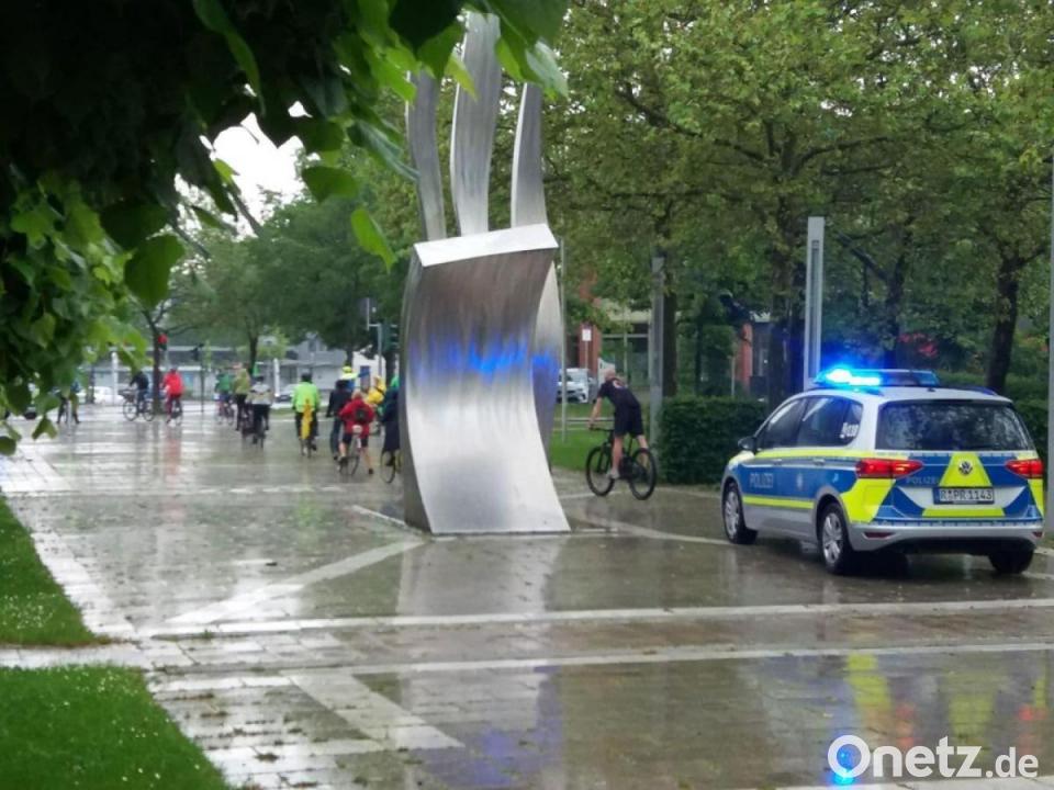 Die Weidener „Fridays for Future“-Gruppe trotzte am Sonntagnachmittag dem Wetter. Bei strömenden Regen starteten zwei Dutzend Klimaaktivisten und zwei Polizeifahrzeuge von der Max-Reger-Halle aus zu ihrer „Mobilität jetzt“-Tour, die sie durch die Bahnhofstraße und über den Rot-Kreuz- und Schlörplatz zum Mauermann-Brunnen am Unteren Markt führte.
