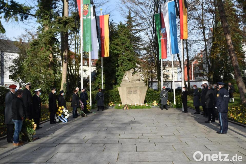 Das Gedenken am Volkstrauertag fiel heuer etwas anders aus als gewohnt. Oberbürgermeister Jens Meyer legte mit Oberstleutnant Sven Zickmantel am Kriegerdenkmal in der Konrad- Adenauer- Anlage einen Kranz der Stadt nieder. Mit dabei waren Vertreter des Bayerischen Soldatenbunds, der Marine- und der Reservistenkameradschaft, der Feuerwehr, der Polizei und der Bundeswehr, sowie des Stadtverbandes für Leibesübungen. Aus der Stadtratsriege waren Gerd Demleitner und Karl Bärnklau sowie die Bürgermeister Lothar Höher und Reinhold Wildenauer (74. Geburtstag an diesem Tag) gekommen. Zu den Bläserklängen der Stadt- und Jugendblaskapelle („Ich hatt´ einen Kameraden“) gedachte Stadtoberhaupt Meyer der Opfer von Krieg, Gewaltherrschaft und Flucht.