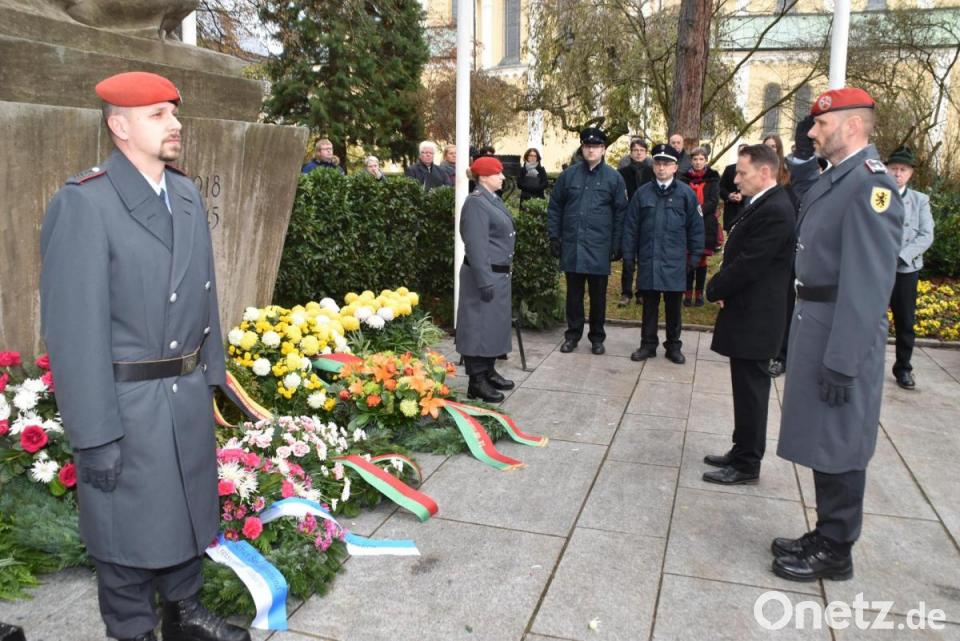 Zusammen mit Vertretern der Polizei, Bundeswehr und der Hilfsorganisationen gedachte am Sonntag, dem Volkstrauertag, Oberbürgermeister Jens Meyer der Toten der Kriege, des Terrors und der Vertreibungen. Mit dabei: Funktionäre aus Sport und Kultur, zahlreiche Kommunalpolitiker sowie Bürger der Stadt.