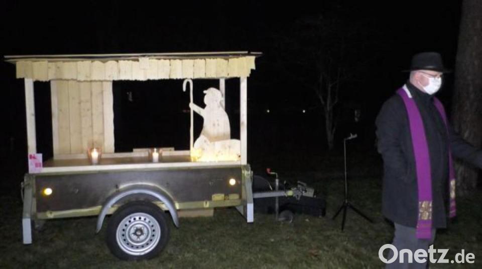 Die Pfarrgemeinde Sankt Konrad hat sich für die Adventszeit wegen der Coronapandemie etwas ganz besonderes einfallen lassen. Auf einen Autoanhänger baute die Pfarrei wird eine Krippe mit Holzfiguren auf. Jeweils am Adventssonntag findet dann eine Andacht an verschiedenen Orten im Hammerweg statt. Diesmal traf man sich im Park beim Turnerweg. Die ersten von Xaver Spieß angefertigten Figuren standen in der Krippe. Jeden Sonntag wird die Krippe erweitert, bis sie am Heiligabend fertiggestellt ist. Der Anhänger mit der Krippe steht unter der Woche vor der Kirche und kann dort besichtigt werden.