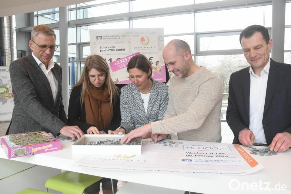 Deswegen überreichten Jens Simon und Nina Lenfers von „puzzleYOU“ nun einen aktualisierten Deko-Scheck an Viola Vogelsang-Reichl, Vorsitzende von „Lichtblicke“. Auch Memo-Spiele und Poster waren verkauft worden, wobei vor allem die Weiden-Puzzles besonders beliebt gewesen seien, berichtete Simon bei der Übergabe. Von jedem verkauften Puzzle gingen 50 Prozent des Erlöses an die Aktion „Lichtblicke.“