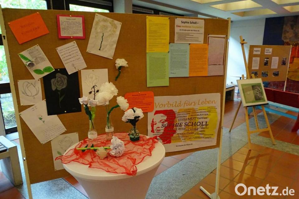 Seit einigen Wochen widmeten sich alle Jahrgangsstufen dem Leben und der Zeit, die in einer großen Ausstellung in der Aula mündeten. Dabei geht es vor allem um die Politik, die Propaganda und den Überwachungsstaat sowie um das Familienleben, die Widerstandsbewegung der Weißen Rose und natürlich um Sophie Scholl selbst. Mit Audiodateien sowie unter dem Namen "Sophie Scholl 2.0" wird das Thema Zivilcourage aufgezeigt.