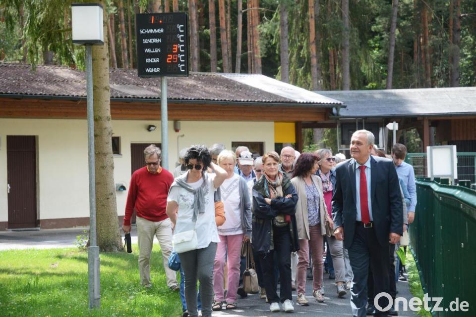 Angekommen im Schätzlerbad führte Bäderleiter und zweiter Vorsitzender des Weidener Schwimmvereins Klaus Kunz die 57 Senioren rund eine Stunde über das Gelände. Das Freibad, so Kunz, sei fast vollständig barrierefrei. "Das Sportbecken bekommt demnächst eine Behindertentreppe", erklärte er. Weil sowieso eine Sanierung der Überlaufköpfe anstehe, werde das Becken zugleich um einen Einstieg für Menschen mit Behinderung erweitert. "Rollstuhlfahrer oder Menschen mit einer Gehbehinderung können durch das Tor zum Campingplatz direkt bis zu den Umkleiden fahren." Das sei nicht überall üblich. "Ein Rollstuhlfahrer aus dem Kreis Tirschenreuth fährt regelmäßig bis hierher, weil es das sonst nirgends gibt."