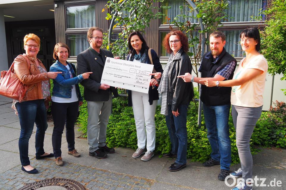 (sbü) Fast fünf Monate hatten die Spendensammler an der Hans-Scholl-Realschule gewartet um aus den Fällen allergrößter Not die passenden Spendenempfänger auszuwählen. Jetzt ist die Entscheidung gefallen. Der Elternbeirat der Hans-Scholl-Realschule übergab die bei der vorweihnachtlichen Lebkuchenaktion eingesammelten Schülerspenden in Höhe von insgesamt 750 Euro an die Gleichstellungsbeauftragte der Stadt Weiden Monika Langner (Vierte von links). Elternbeiratsvorsitzender Martin Kohl (Dritter von links) überreichte das Geld. Zwei alleinerziehende junge Mütter hatten sich kürzlich in einer großen Notsituation an die Gleichstellungsbeauftragte gewandt. Von einem Tag auf den anderen standen die berufstätigen Frauen mit ihren Kindern allein im Leben. Wie ein Blitzschlag hatte das Schicksal zugeschlagen, berichtete Langner. Beide Frauen wüssten derzeit nicht, wie es in ihrem Leben weitergehen soll. Mit dem gespendeten Geld soll die allererste Not gelindert werden. Organisiert wurde die Aktion von Elternbeirat und Schülermitverwaltung. Lebkuchen waren vor Weihnachten in allen Klassen verteilt worden, dafür gab es Schülerspenden für Familien in Not.