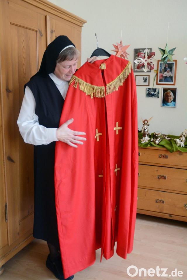 Schwester Brigitte mag Feste. Vor allem die Vorbereitungen machen ihr Freude. So übernimmt sie selbstverständlich auch die Gestaltung der Nikolausfeier. "Wir werden bei Punsch und Lebkuchen beisammensitzen und auch Lieder singen. Und natürlich kommt der Nikolaus", sagt die 65-Jährige. Das ist ihr Part. Dafür wirft sich die Oberin einen festlichen purpurnen Umhang um. "Das ist mein eigener", sagt sie. "Den halte ich in Ehren. Eine Mitschwester hat ihn für mich maßgeschneidert." Wird sie als Nikolaus streng sein? "Ach nein, es gibt ein bisschen Mahnung, aber viel mehr Lob."