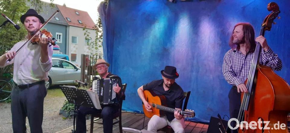 Das "Parapluie"-Wirtepaar Sabine und Bernd Mende hatte den Besuchern nicht zu viel versprochen. Was die hervorragende Band nämlich auszeichnete, war ihre vornehme Zurückhaltung, vor allem aber ihre beachtliche Virtuosität auf der Bühne. Zu Gehör kamen Jazz, Gypsy-Swing á la Django Reinhardt, südosteuropäische Folklore, Klezmer Musik, eine Musette, Tango und Chansons. Genau das Richtige für einen lauen Sommerabend im Biergarten, der mit bunter Beleuchtung und einer romantischen Feuerstelle das Zuhören gefühlvoll machte. Den Zuhörern wurde der Musikgenuss leicht gemacht. Denn sie brauchten sich nur zurückzulehnen um von ihren Sitzen aus den äußerst präzise gespielten Klängen zu lauschen oder im lockeren Rhythmus dazu zu tanzen. Ein gelungener Konzertabend.