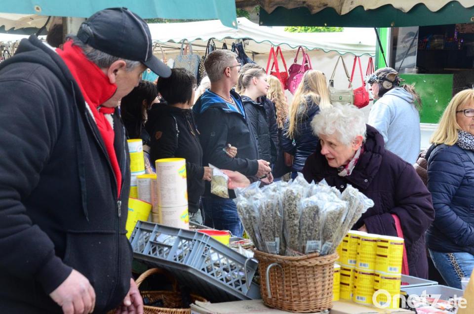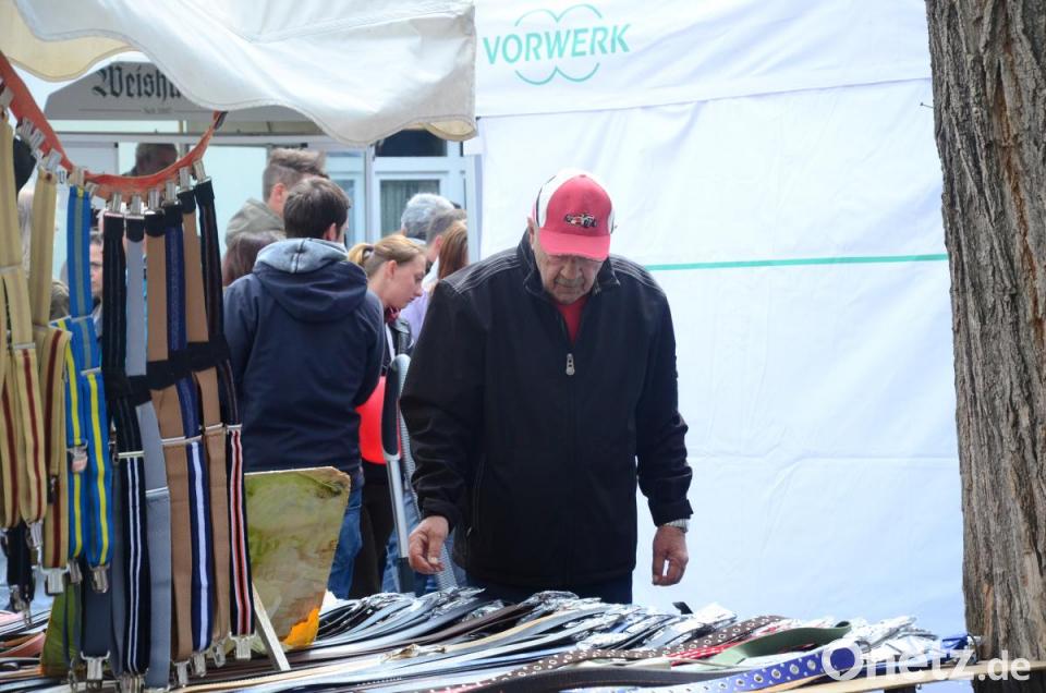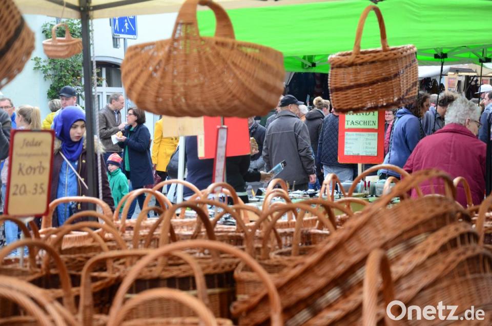 90 Fieranten hatten ihre Stände rund ums Alte Rathaus aufgestellt. Korbflechter, Gürtel- und Geldbeutelhändler oder Marktkaufleute, die Küchenmaschinen und selbst Staubsauger anboten. Das machte die ganz besondere Stimmung dieses Tages aus. Die Besucher wollten nicht nur in die Geschäfte gehen, sie wollten auch von den Marktschreiern unterhalten werden.