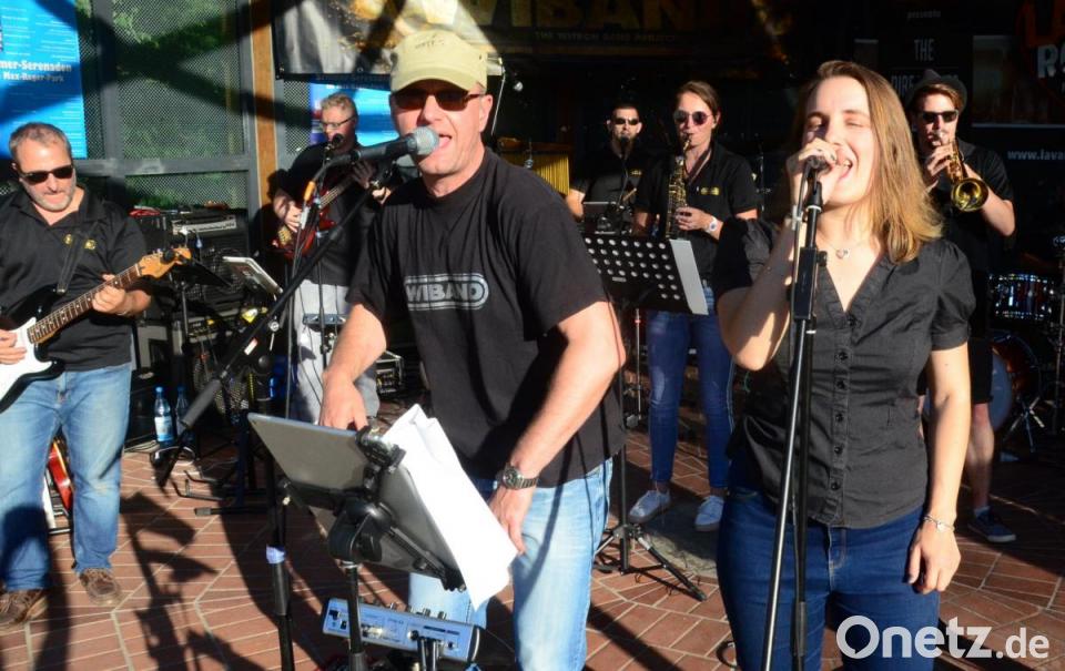 „Wiband“ rekrutierte sich aus zwölf Mitarbeitern der Witron-Gruppe, die es nach Feierabend und auf Firmenfeiern krachen lässt. Am Mittwochabend spielte die Combo einen tanzbaren Gig bei der Weidener Sommerserenade. Das Erfolgsrezept: Ein bunter Mix aus Rock, Folk, Country und lateinamerikanischen Rhythmen.