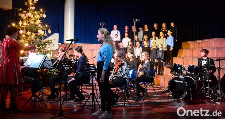 Einen wesentlichen weihnachtlichen Anstrich hatten im Anschluss Stücke aus Peter Tschaikowskys „Nussknacker“, serviert vom Kammerorchester und Claudia Lehmann-Schmidkunz am Klavier. Der große Schulchor sang das Motto-gebende „Believe“ aus dem Film „Polarexpress“. Über ein „Sister Act“-Medley ging es zum Finale mit „Rockin around the Christmas Tree“. Das Publikum quittierte die tolle Stimmung mit viel Applaus und ging im Bewusstsein: Bald ist Weihnachten.