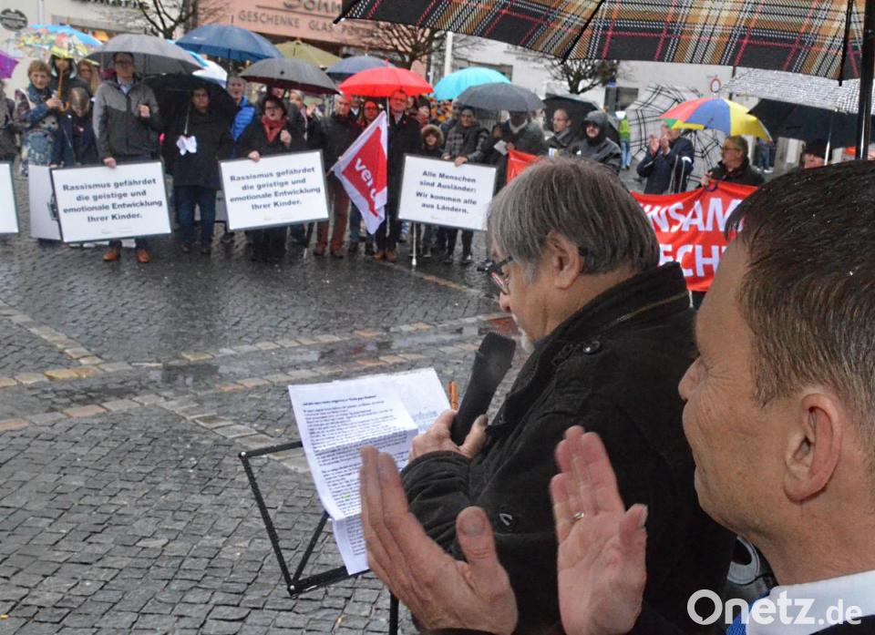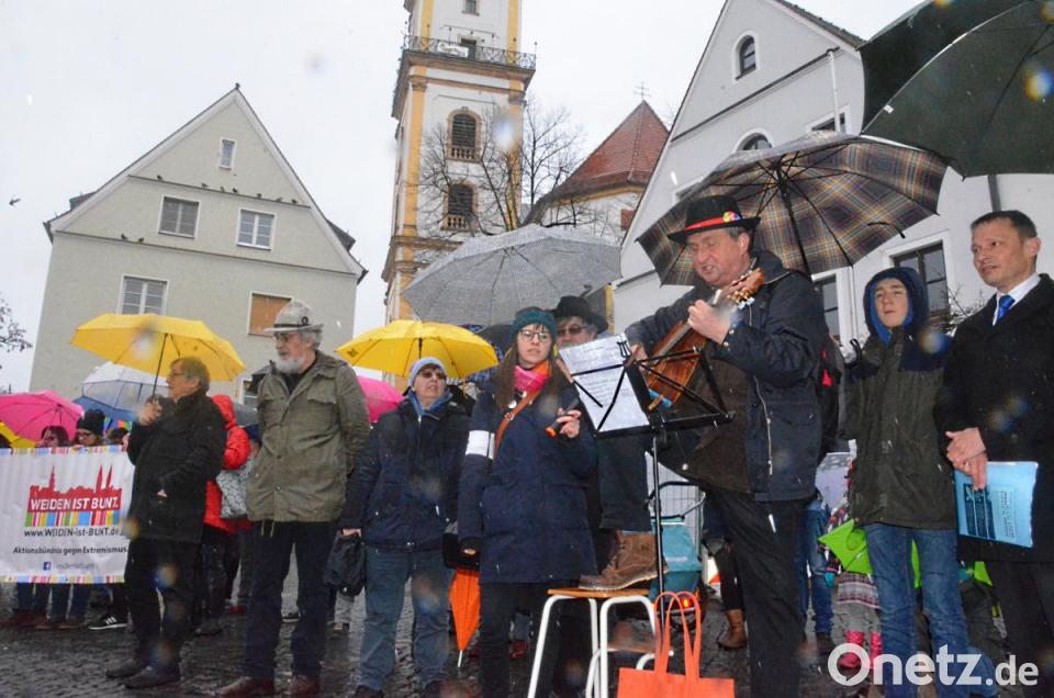 Mit der Aktion am Oberen Markt sind die „Internationalen Wochen gegen Rassismus“ eröffnet. Amnesty International, "Weiden ist bunt", Jugendforum „Demokratie leben“, Schulen gegen Rassismus, Runder Tisch, Integrationsbeirat, Ärzte für den Frieden, Arbeitskreis Asyl, Kirchen und Gewerkschaften - Vertreter all dieser Institutionen vereinten sich am Samstagvormittag eine halbe Stunde lang vor dem Alten Rathaus, um dem Rassismus entgegenzutreten. An einem regennassen, kalten und windigen Tag. Ziel der Demonstranten: ein „Europa der Menschenwürde“ wählen und sich den nationalistischen, rassistischen und autoritären Angriffen von Rechtsaußen entgegenstellen. Bürgermeister Jens Meyer lobte die Weidener Stadtgesellschaft, die sich schon immer gegen Menschenfeindlichkeit gewandt habe.