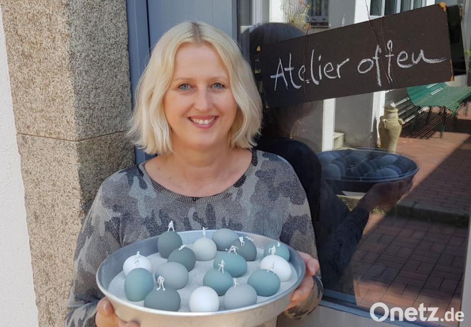 Einen Vormittag lang hat die Künstlerin an ihren Eiern gewerkelt. „Am längsten dauert‘s, bis du weißt, was du willst.“