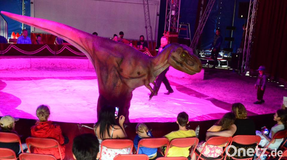 Vier Araberpferde traben durch die Manege. Zwei riesige Esel bauen eine Brücke für eine Ziege. Ein Dinosaurier erschreckt die Kinder. Ein Knabe steckt dem T-Rex den Kopf ins Maul. Clown Francesco probt mit Zuschauern ein Konzert und "Schnitzel" verteilt riesige Seifenblasen in der Manege. Das Finale gestaltet ein mutiger Artist im spektakulären Todesrad.