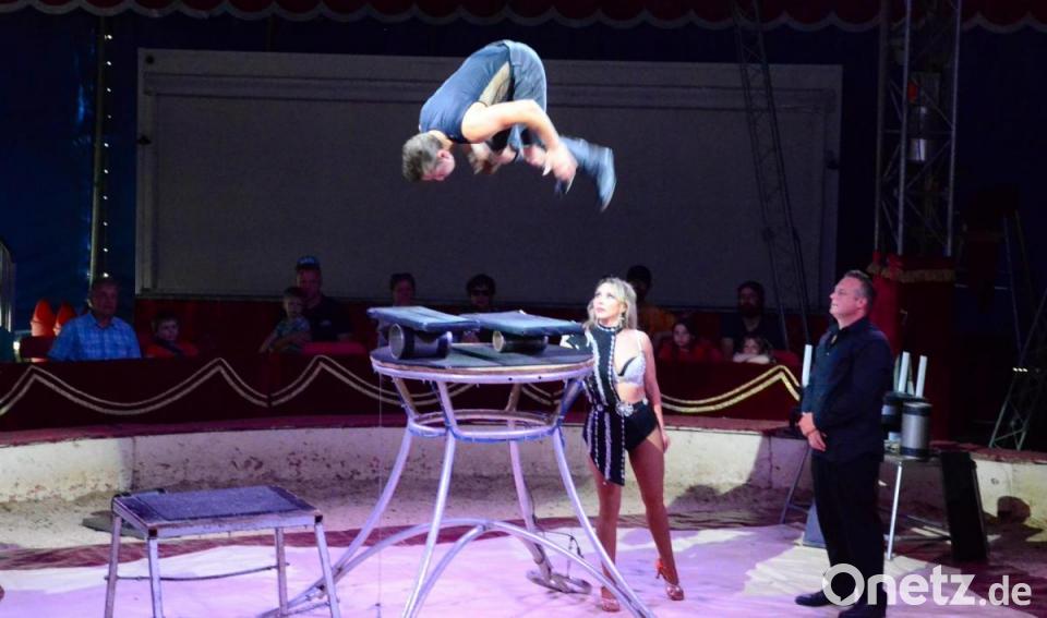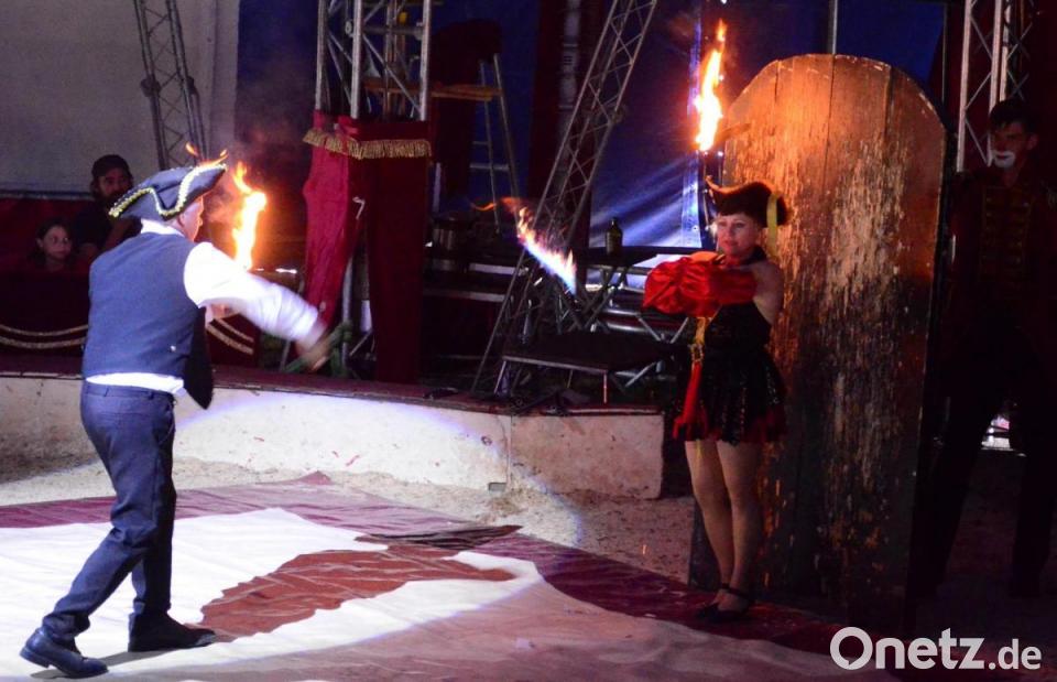 Söhne, Tochter, Schwiegertochter. Jeder ist eingespannt, trägt sein Scherflein bei. Sogar die Gattin des Direktors lässt sich auf brennende Messer ein, die ihr Gatte auf sie schleudert. "Die Weidener sind gechillt", stellt Zirkus-Chef Karl Altoff-Köllner fest. Er hat das Unternehmen von den Eltern übernommen. "Wir sind froh, dass uns die Bürger so annehmen." Familiensitz war früher Ost-Berlin. "Wir waren noch nie hier in der Region. Auch wenn Eigenlob stinkt: Wir bieten unseren Gästen ein sensationelles Programm. Wir sind alles gute Artisten."