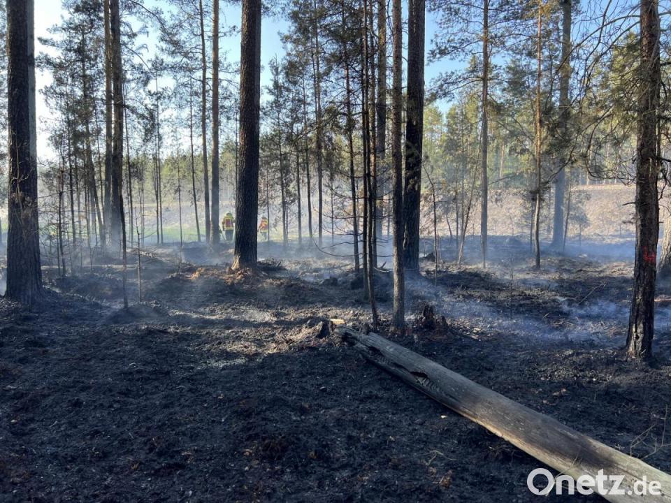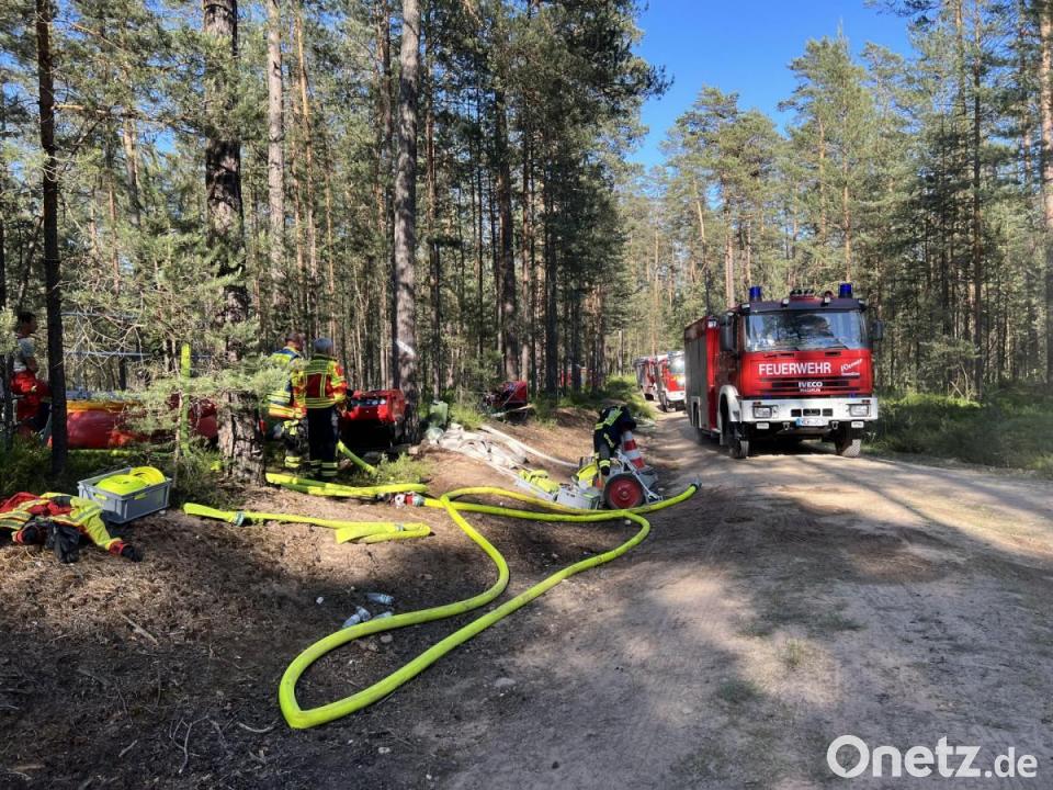 Denn der Brandherd mitten im Wald war schwer erreichbar. "Die Zugänglichkeit an Bahnlinien gestaltet sich zudem schwierig", erklärt List. Auch am Montag. Und: Es fehlte an Löschwasser. In der Folge brauchte es einen Pendelverkehr von zehn bis zwölf Tanklöschfahrzeugen, die jeweils 2500 Liter Wasser zur Brandstelle karrten. Dort angekommen, wurde das Wasser in Faltbottiche geleitet. Sie fassen jeweils 5000 Liter. Von dort wurde das Löschwasser weitergepumpt zum Brandherd - und gelöscht.