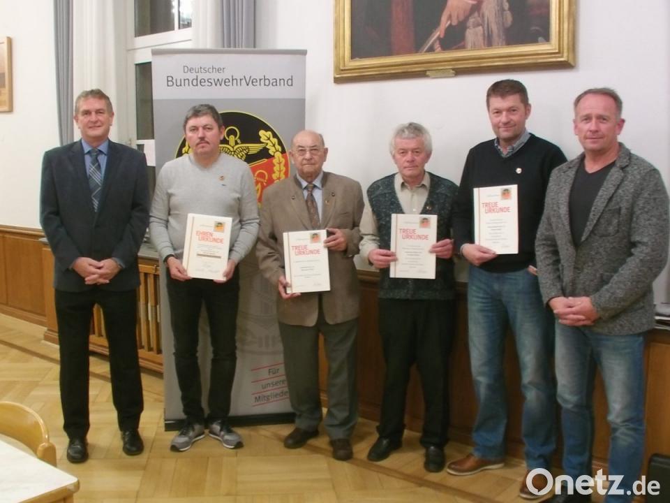 Der Vorsitzende der ERH des Landesverbandes Süddeutschland, Oberstabsfeldwebel a. D. Bernhard Hauber, dankte anschließend Oberstabsfeldwebel a. D. Josef Strigl für 25 Jahre, Stabsunteroffizier d. R. Gerhard Murr für 40 Jahre, Oberstleutnant a. D. Helmut Federl für 50 Jahre und Stabsfeldwebel a. D. Hermann Nickl für 60 Jahre Mitgliedschaft im Deutschen Bundeswehrverband (DBwV). Außerdem überreichte er dem Vorsitzenden der ERH die Verdienstnadel des DBwV in Bronze für sein jahrelanges Engagement.