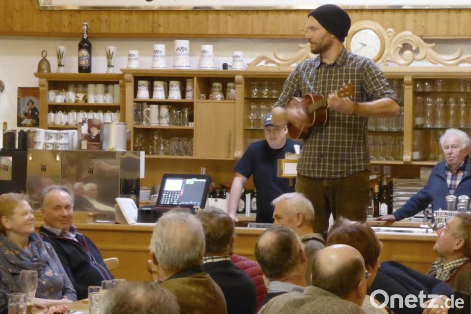 Sie stellten sich als „Piraten der Wintergerstensaaten“ und „Ganoven der messerscharfen Strophen“ in Gummistiefeln im Postkellersaal vor. „Da Oi“, Sonderschullehrer, und „da Ander“, Profimusiker, glänzten an den verschiedensten Instrumenten wie Gitarre, Keyboard, Saxophon, Klarinette und Bassklarinette, aber auch Kuhhornflöte, Glockenspiel oder Melodica. Ihre humorvollen, teils sehr tiefsinnigen, lyrisch-poetischen Mundart-Songs garnierten sie mit Publikumskontakt und witzigen Geschichten. Sie erzählten „Ich moch mäi Sau so gern, däi därf mäi Graichards wärdn“, „Lägg, schau hi, da Nachbar“ oder klagten „Mia gäihds haid irgendwäi beschissn“.
