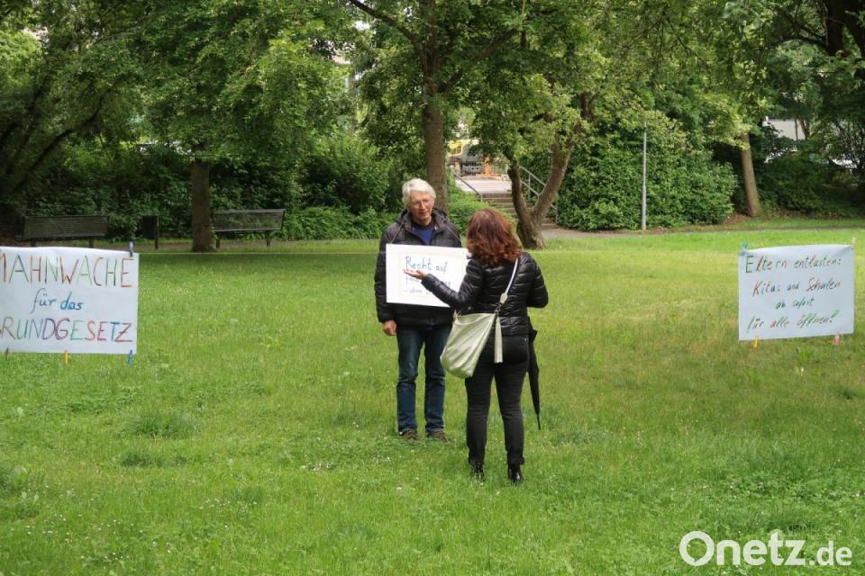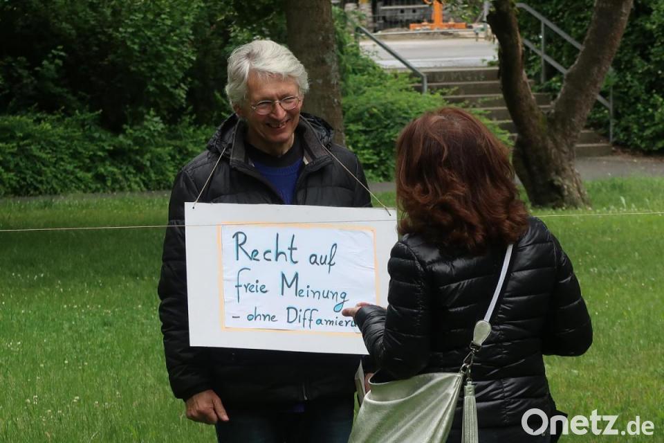 Wenige Meter weiter, auf dem Woodstock-Hügel, demonstrierte Helmut Schöner als einziger Teilnehmer der von ihm angemeldeten Mahnwache. Die Grundrechte schützten nicht nur gute und demokratisch wertvolle Meinungen, sondern auch das Abseitige und Abstruse, sagte er. Sie würden sogar für Radikale und Extremisten gelten und für solche Leute, die Corona für eine Erfindung hielten.