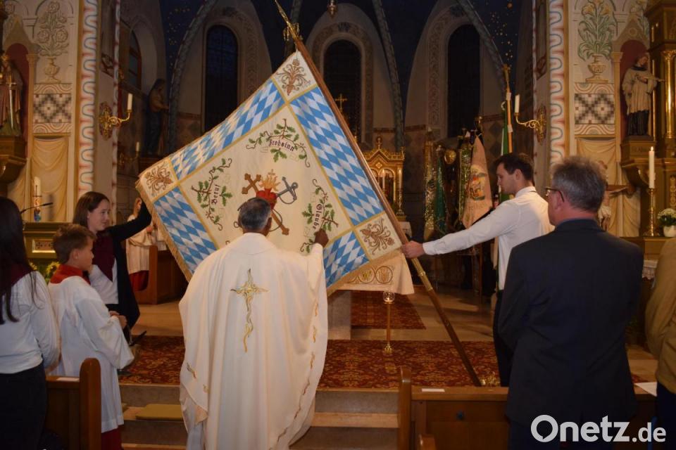 Coronabedingt musste die Weihe der Fahne zwei Jahre verschoben werden. Am Samstag war es dann soweit: Pfarrer Johnson Varakarambil weihte die neue Fahne. Alle Vereine der Gemeinde Guteneck und viele Gläubige der Pfarrei feierten mit der Landjugend dieses besondere Ereignis. Pfarrer Johnson ging auf die Symbolik der Fahne ein. Sie trägt in der Mitte das Kreuz als Zeichen des Glaubens, einen Anker (in Gott verankert) und ein brennendes Herz (für den Glauben brennen). In den vier Ecken stehen Frohsinn, Glaube, Sitte und Beruf als Kernzeile eines aufrichtigen Lebens. Durch die Mitglieder der KLJB wurden die einzelnen Buchstaben neu definiert als Bewegung, Jugend, Land und Katholisch. Ihr Bestreben ist es, den Glauben und die christlichen Werte aufrecht zu erhalten.