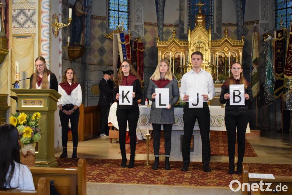 Dass die KLJB trotz vieler Unkenrufe den Nerv der Zeit trifft, zeigt das große Interesse der jungen Leute an der Jugendbewegung. Allein beim Festgottesdienst traten 20 jungen Christen der KLJB Weidenthal bei. Mit einem deutlichen "Ja" bekundeten sie ihre Zusage, die Werte der KLJB zu beachten. Als sichtbares Zeichen legten die Vorstände Julia Forster und Johannes Eckl den Neumitgliedern Krawatte oder Halstuch um. Bürgermeister Johann Wilhelm dankte den jungen Leuten für ihren Einsatz um die Gemeinde. "Ihr hab das Bild der Gemeinde aufgewertet und viel für die Gemeinde geleistet", galt sein Dank den rührigen Vereinsmitgliedern. Die beeindruckende Fahnenweihe wurde von der Blaskapelle Pischdorf musikalisch gestaltet. Nach dem Gottesdienst wurde im Festzelt noch tüchtig gefeiert.
