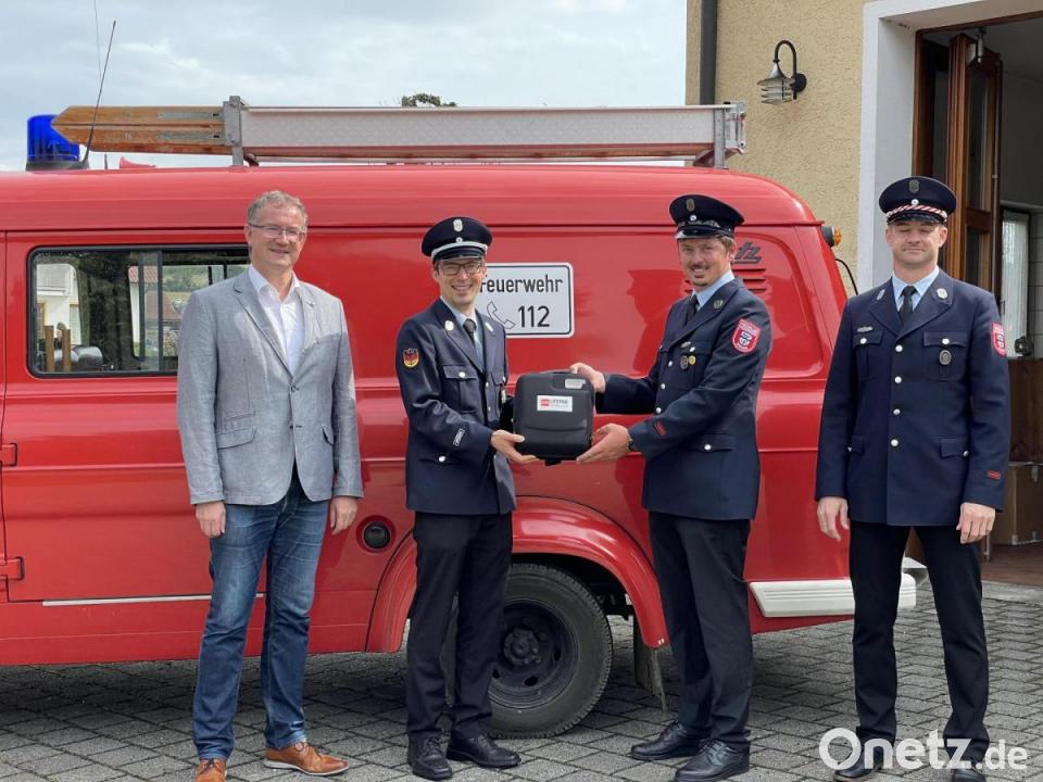 Grabinger freute sich, als am Ende der Versammlung ein Defibrillator übergeben werden konnte. Gespendet hat dieses unter Umständen lebensrettende Gerät der Baggerbetrieb Süß aus Richt. Firmenchef Andreas Süß, Schriftführer der Weidinger Wehr, übergab den Defi an den Kommandanten Florian Aumeier. Dieser werde künftig im Feuerwehrauto mitgeführt, so dass der Defi auch mobil eingesetzt werden kann.