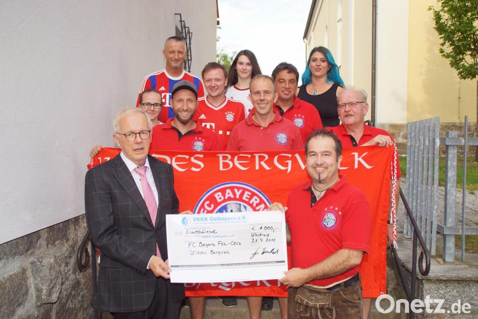 (mmj) Es war ein besonderer Einstieg in die Jahreshauptversammlung: Mit einer Spende von 1000 Euro an den "Verein zur Förderung krebskranker und körperbehinderter Kinder" (VKKK Ostbayern) beweist der Fanclub, wie bereits in den vergangenen Jahren, erneut sein soziales Engagement. Die Vereinsführung hatte zu diesem Anlass VKKK-Beiratsmitglied Hans Osterholt nach Weiding eingeladen, dem Bernhard Grau diese großzügige Spende überreichte.