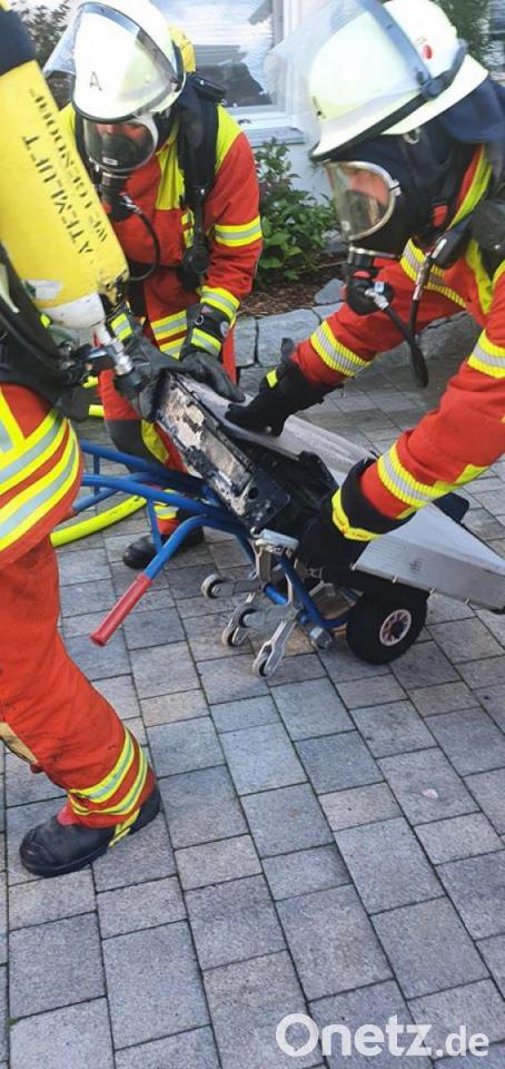 "Kellerbrand in Weigendorf" lautete am Montagnachmittag die Alarmierung für die Feuerwehren Weigendorf, Hartmannshof und Pommelsbrunn. Ursache, so war schnell bekannt, war der Energiespeicher der Photovoltaikanlage eines Wohnhauses, der offenbar total überhitzt war. Unter Atemschutz rückten die Wehrleute nach den übereinstimmenden Berichten der Feuerwehren in den völlig verrauchten Keller vor. "Der Speicher wurde gekühlt und demontiert, anschließend unter schwersten Bedingungen von den Atemschutztrupps ins Freie gebracht", beschreibt die Feuerwehr den schwierigen Akt, den rund 120 Kilogramm schweren Lithium-Kobald-Speicher zu demontieren und aus dem Keller zu schaffen. Parallel wurden Belüftungsmaßnahmen eingeleitet und ein Rauchschutzvorhang gesetzt. Nachdem das geschafft war, konnte der Akku in der Schaufel eines Frontladers mit Wasser abgekühlt werden. Der defekte Speicher wurde anschließend an ein Entsorgungsunternehmen übergeben. Gegen 21 Uhr konnte die Weigendorfer Feuerwehr als letzte Einheit wieder abgezogen werden.