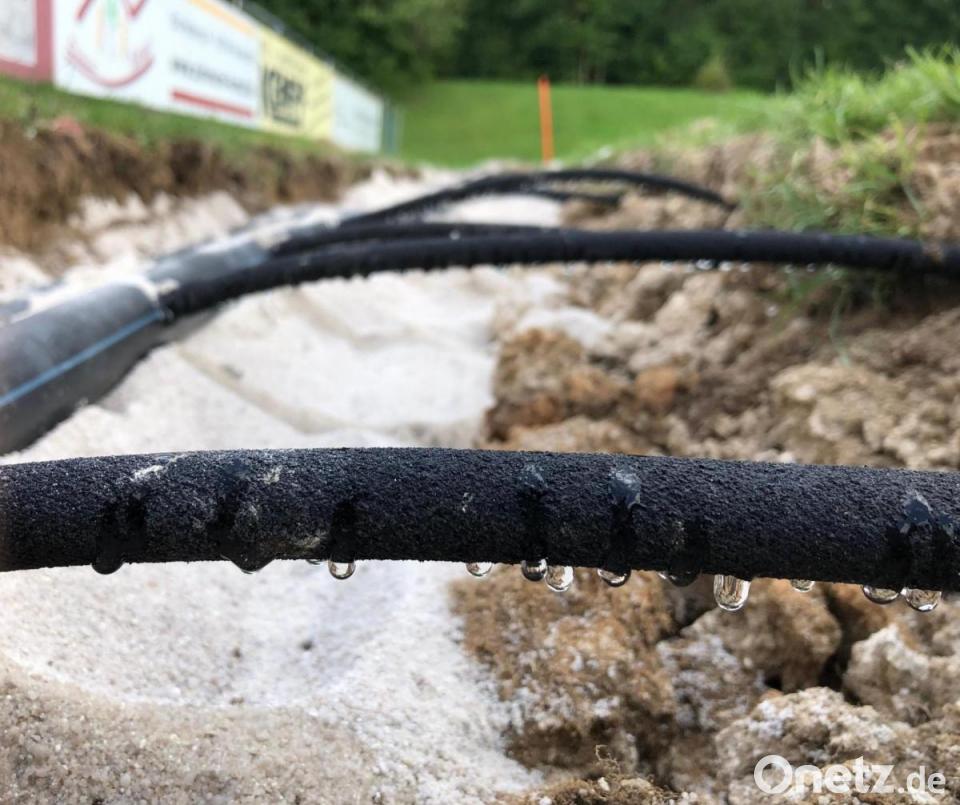 Durch Bewässerungsschläuche in 15 Zentimeter Tiefe wird das Wasser tropfweise abgegeben. Diese sind zu 100 Prozent aus Recyclingmaterial hergestellt und sorgen dafür, dass die Wurzeln deutlich mehr wachsen, wodurch ein deutlich größerer Wasserspeicher im Erdreich auch für Regen zur Verfügung steht und der Rasen scherfester wird. Außerdem gibt es bei der Bewässerung im Boden weder Verdunstung noch Verwehung. Mit nur vier bis fünf Kubikmeter Wasser pro Stunde lässt sich der Rasen auch bei längeren Hitzeperioden von über über 35 Grad und ohne Personal gewährleisten. Und das, so freue sie die Weigendorfer, bei trockner Rasenoberfläche und unabhängig von Tageszeit und Spielbetrieb.