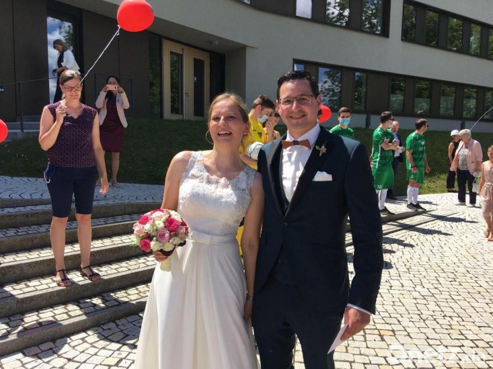 Familie, Freunde und Arbeitskollegen sowie die aktiven Fußballer der DJK Letzau, bei denen der Bräutigam seit etwa einem Jahr kickt, standen für die 34-jährige Braut und den 37-jährigen Bräutigam Spalier und überbrachten die Glückwünsche.