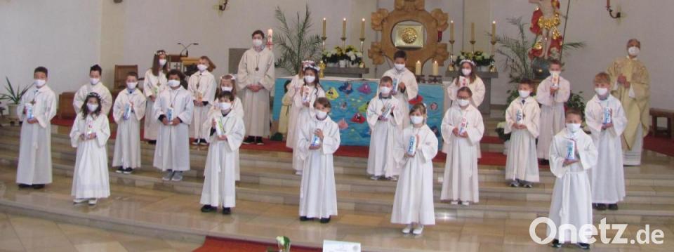 Am Sonntag feierten in Weiherhammer in der Pfarrkirche „Heilige Familie“ 21 Kinder Erstkommunion. Paul Bogner, Sebastian Breitschaft, Fanziska Eckl, Luis Eder, Manuel Fellner, Diego Grant, Sebastian Hierold, Julia Hintermeier, Julian Hör Melina Kranz, Sophia Küblböck, Elli Leistner, Jakob Mägerl, Jonas Martin, Tyrese Owusu, Maximilian Prölß, Lucia Rittner, Bastian Schmid, Lisa Schrehardt, Neomi Spiel und Phillipp Werner zogen feierlich in die Kirche ein und stellten ihre Kerzen im Altarraum auf . Dann nahmen sie bei ihren Familien in der Bank Platz.