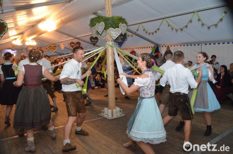 „Wenn in Weiherhammer s‘ Festzelt steht und sich alles um die Kirwa dreht, auf geht’s, jetzt iss wieder soweit“, war „Rock Mi“ von den Alpenrebellen textlich auf Weiherhammer umkreiert, als die acht Kirwapaare einmarschierten und ihre Tänze begannen, die mit einer fetzigen Rock-'n'-Roll-Einlage zur Kür des Kirwapaars überleiteten. Dabei tanzen die Paare nach bayerischen Klängen um den Kirwabaum und jeweils nach einigen Takten gaben sie den Kirwastrauß an das nächste Paar weiter. Auf einen Schlag brach die Musik abrupt ab und Anna Schwirzer sowie Severin Heese hatten die Strauß in der Hand. Unter großem Jubel und Glückwünschen der anderen Paare präsentiert sich das neue Oberkirwapaar dem Publikum. "Wir sind nur hier ein Tanzpaar aber nicht darüber hinaus", berichteten die 19-jährige Verwaltungsfachwirtin und der 21-jährige Schreiner. Nach der Kür wird ihre nächste Pflicht sein, für den Kirwaverein „ein Fest zu schmeißen“.
