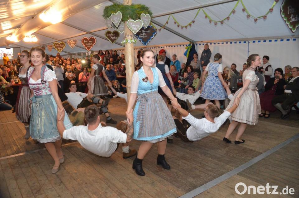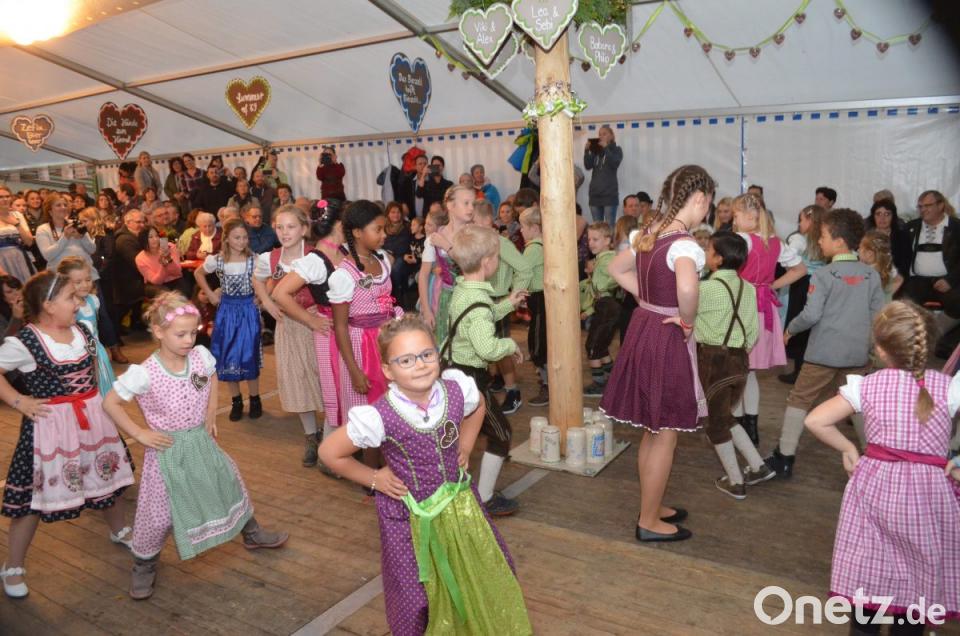 Egeter vergaß auch die vielen Helfer im Hintergrund nicht und weil die Kinder schon mit den Füßen scharrten, gab er den Tanzboden um den Kirwabaum in der Mitte zum Finale frei. Den Auftakt machten die 18 Minis, das Kirwasymbol mit Tanzschritten umkreisten und dabei vom Saal Riesenapplaus ernteten. 32 Kids in schicker Tracht lösten die Kleinsten dann ab. „Mir sama da, damit mir Spaß ham“, tönte es aus den Lautsprechern und die Kinder hatten Spaß, wie die Zuschauer auch. Seit Juni probten die Kleinen unter der Anleitung von Trainerin Susi.