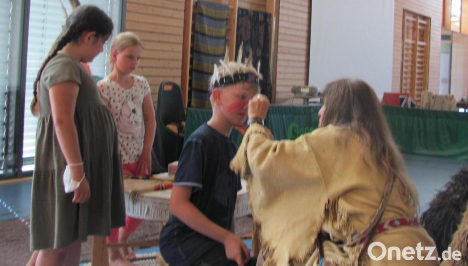 Zwei Tage konnten Schüler der Grund- und Mittelschule zum Teil bis in die Abendstunden Frischluft genießen, an Aktionen teilnehmen, beobachten, Experten befragen, draußen etwas ausprobieren, statt im Klassenzimmer zu sitzen. Die Buben und Mädchen gaben sich einen Indianernamen, entwarfen ein Emblem für ihre Gruppe oder bastelten Kopfschmuck mit originalen, zum Teil selbst gesammelten Vogelfedern. Im Heimat- und Sachkundeunterricht der dritten Klasse wurden Tierspuren behandelt und Laub- und Nadelbäume besprochen, die dann während der Projekttage in einem Gruppenwettbewerb in Teamarbeit wiedererkannt werden sollten.