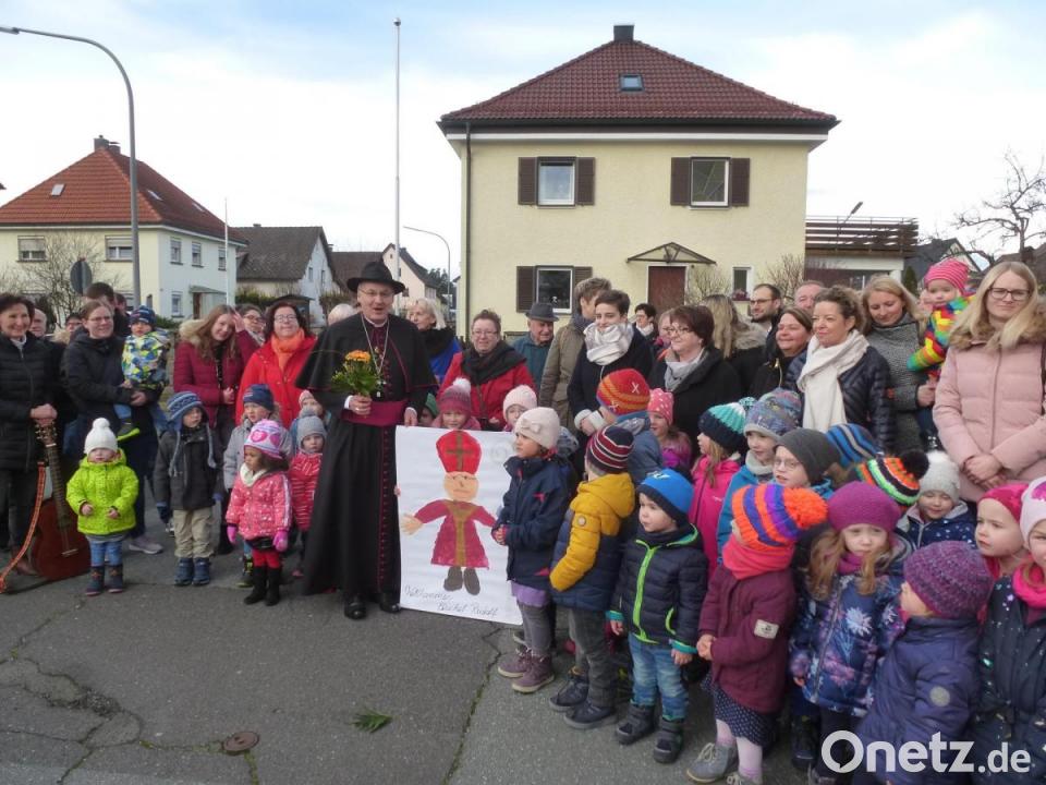 Einen warmherzigen, fröhlichen Empfang bereitete die Pfarreiengemeinschaft (PGM) Weiherhammer-Kaltenbrunn-Kohlberg am Sonntag Bischof Rudolf Voderholzer bei dessen Pastoralbesuch. In das „Laudato si“ der Mädchen und Buben aus allen drei Kindergärten stimmte der Oberhirte mit ein. „Von unserer PGM ein herzliches Willkommen. Sie haben Glück, hier leben 90 Prozent aller Frommen. Mit Erstaunen haben wir vernommen, dass Sie ausgerechnet zu uns nun kommen. Menschenfischer und Glaubensdiener wollen Sie sein, dadurch soll keiner mehr sein allein, sich im Gotteshaus fühlen wie daheim“, reimte die Kaltenbrunner Pfarrgemeinderatssprecherin Martina Messer, ehe ihre Kollegin Daniela Steinsdörfer aus Kohlberg, wie zuvor schon Kinder, einen Blumenstrauß überreichte. Der hohe Würdenträger nahm sich vor dem Einzug in die Pfarrkirche Zeit, um jedes Kind zu segnen (ausführlicher Bericht folgt).