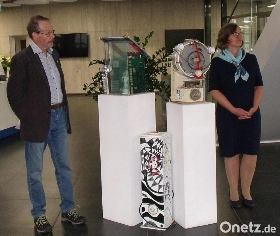 Großen Dank sprach der Künstler seinem Gastgeber, der BHS, vertreten durch Christian Schneider, und den zuständigen Organisatoren aus. Auch Helga Bradatsch, die mit der Edmund-Bradatsch-Stiftung Studierende im Rahmen eines Deutschland-Stipendiums im Raum Amberg, Weiden und Regensburg unterstützt, fand sich unter den geladenen Gästen. Die Impulsgeberin für die „Zeitreise“ war Teamchefin Dominique Ehmann, die auch alle Fäden in der Hand hielt. Die Ausstellung, deren Erlös in gleichen Teilen die Tafel Neustadt/Weiden und Greenpeace erhalten, kann noch bis zum 26. Oktober im Lifecycle Building der BHS Weiherhammer, Paul-Engel-Straße 1 besucht werden.