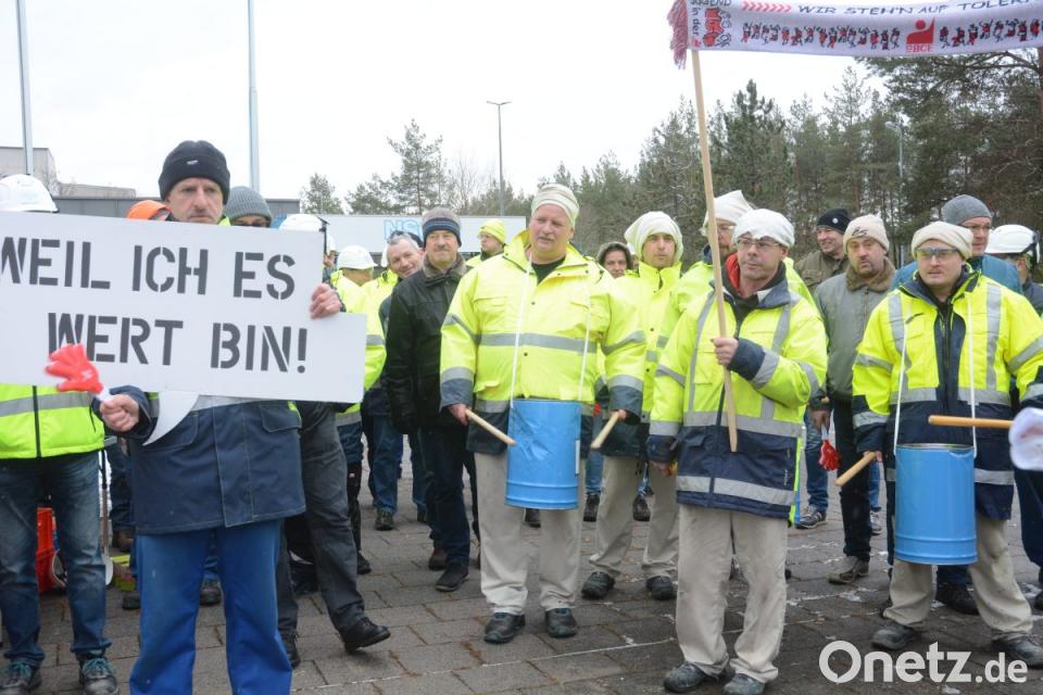 Angeboten worden sei eine Erhöhung des Weihnachtsgeldes um fünf Prozent, dafür sollte die Erfolgsbeteiligung reduziert werden. "Das ist kein Angebot", so Vater. "Lieber Arbeitgeber, wir haben Projekte mitgestaltet und in die Zukunft investiert. Jetzt ist das Projekt ,Mitarbeiter' dran", sagte er, begleitet von Jubel, Ratschenlärm und Trommeln. Die Teilnehmer trugen ein Banner mit sich, auf dem stand: "Weil ich es wert bin."