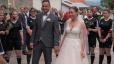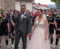 Einen standesgemäßen Empfang bereiteten den Frischvermählten auf dem Kirchplatz Kirwaleit und Kirwakids, für die Tanzlehrerin Susanne Martin gratulierte. Spalier standen für ihren Trainer die Fußballer des TuS Schnaittenbach mit Abteilungsleiter Patrick Lassmann sowie mit weißen Rosen das Kollegium von der Luce-Stiftung. Glückwünsche sprachen ferner aus Bürgermeister Ludwig Biller, Severin Hirmer für die CSU, Gemeinderatskollege Wolfgang Krauß sowie die Geistlichen Varghese Puthenchira und Prince Kalarimuryil.