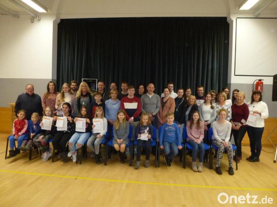 „Die Leistungen waren toll. Sie müssen erst mal erreicht werden“ sagte Leiterin Gerlinde Wagner am Sonntag in der Turnhalle bei der Verleihung der Urkunden für das Sportabzeichen in Bronze, Silber und Gold. "Es ist die höchste Auszeichnung des Deutschen Olympischen Sportbundes außerhalb des Wettkampfsports", erklärte Wagner. Sie bedauerte jedoch, dass 22 Kinder von den Schulen abgezogen wurden. Durch die Neuausrichtung der Sportabzeichen-Richtlinien können Kinder, die im Verein und in der Schule Sportabzeichen abgelegt haben, bei den Vereinen nicht mehr berücksichtigt werden.