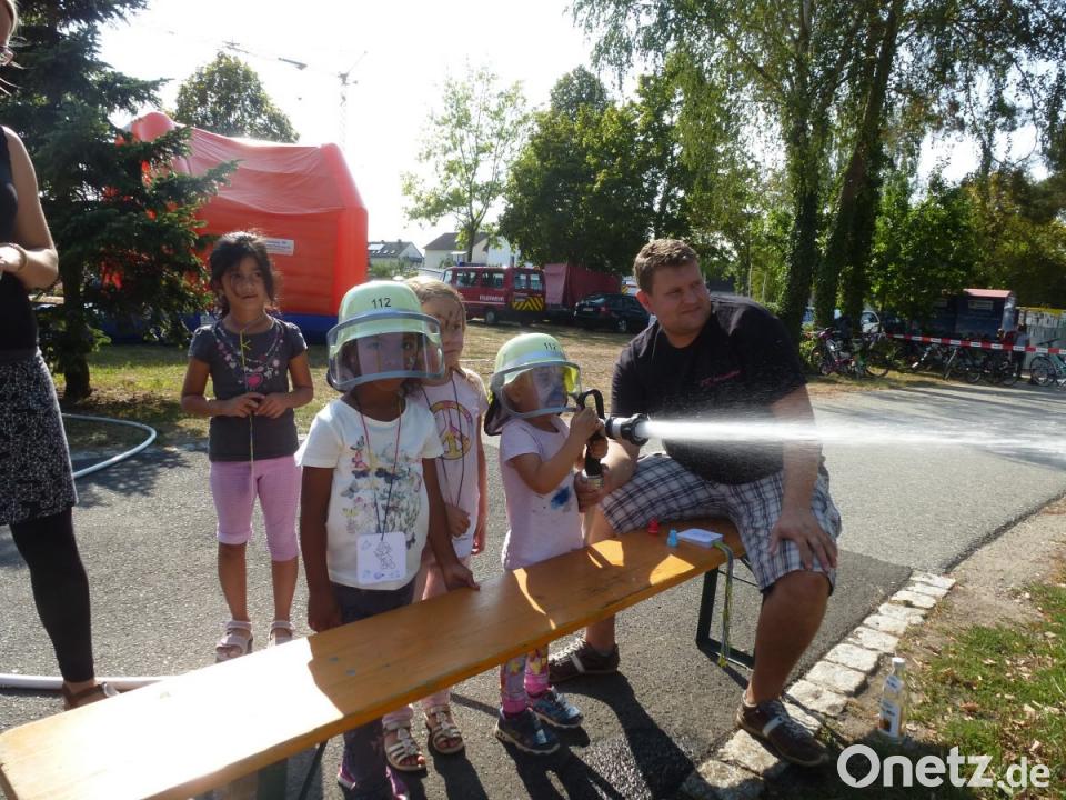 (bk) Schon die Jüngsten erwiesen sich als begeisterte Feuerwehrfans. Bei bestem Wetter hatten die Buben und Mädchen viel Spaß an nicht weniger als einem Dutzend Spielstationen, die überwiegend weibliche Aktive betreuten. Die Angebote sollten den Kindern auch die Angst vor der Feuerwehr nehmen. "Wir wollen mit dieser öffentlichen Veranstaltung bewusst machen, dass die verschiedenen Maßnahmen - auch der laute Sirenenalarm - alleine darauf ausgerichtet sind, Menschen zu helfen", bemerkte Vorsitzender Rajmund Buchmann. "Denn jeder kann in die Situation kommen, bei der er die Hilfe der Feuerwehr benötigt", fügte Vizekommandant Bernhard Prün hinzu. Die Festdamen bewirteten auch Eltern und Großeltern in der schattigen Fahrzeughalle mit Kaffee, Kuchen, Wurstsemmeln und Getränken. Die Kleinen wurden für ihre Übungen mit einem Eis belohnt. Bei der Fahrt im großen Löschfahrzeug schlugen die Herzen höher. Nach diesem gelungenen Ferienprogramm wäre es keine Überraschung, wenn die zu Jahresbeginn gegründete 20-köpfige Kindergruppe "Feuerflitzer" Zuwachs bekäme.
