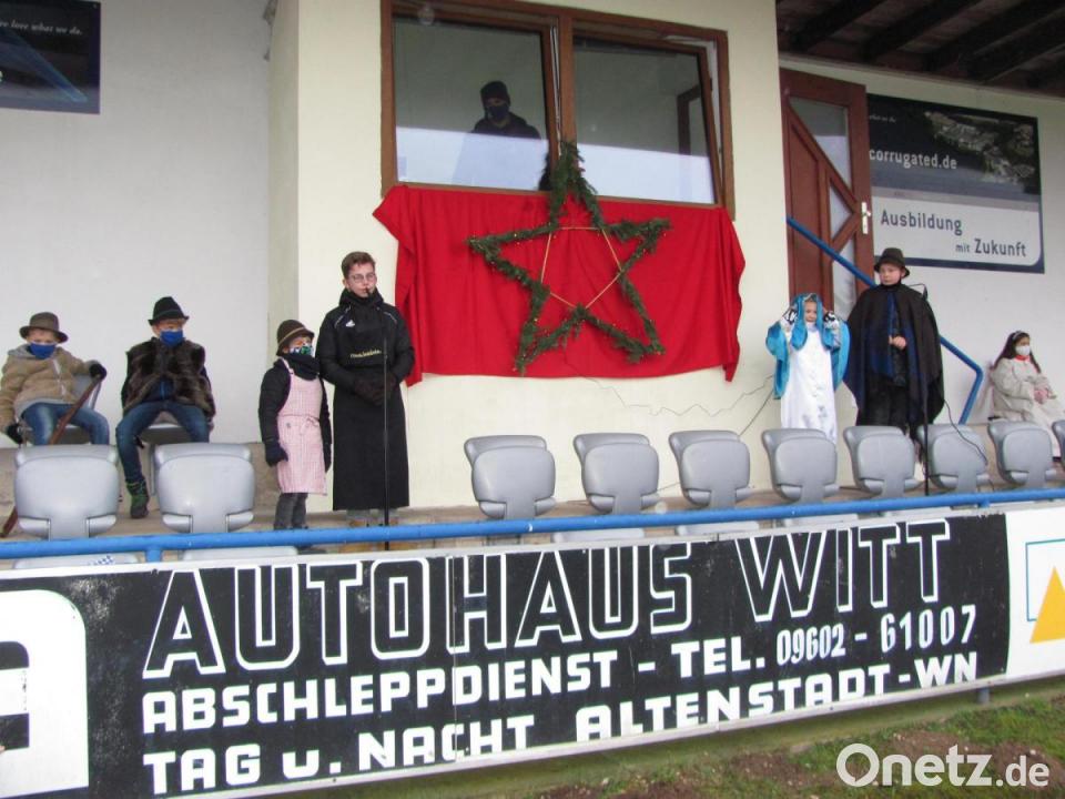 Am Heiligen Abend begrüßte Pfarrer Varghese Putenchira die Gläubigen, vorwiegend Familien mit Kindern auf dem Fußballplatz in Weiherhammer nicht zu einem spannenden Fußballspiel sondern zu einem Krippenspiel. Ulrike Rauch hatte es mit einigen Kindern aus Weiherhammer einstudiert. Die Umgebung griffen auch die Sprecher Lisa und Josef Ziegler auf. „Nau schau dich doch um, a Fussballplatz, unromantischer geht es doch nicht? so Josef Ziegler. Lisas Antwort: „An Weihnachten geht es doch nicht um Deko und Romantik. Das Wichtigste ist dass Gott uns seinen Sohn geschickt hat. Jesus kommt als kleines Kind zu den Menschen. Er ist der Erlöser, das feiern wir doch." Josef: "Ein bisschen heimeliger hättet ihr das schon herrichten können." Lisa argumentiert: „Als Jesus auf die Welt kam, war nix heimelig und romantisch, genaugenommen war es eine mittlere Katastrophe damals. Weit weg von daheim ein Kind zur Welt bringen ohne Hebamme und nicht mal einem richtigen Dach über dem Kopf. Genau deswegen ist unser Krippenspiel gerade in dieser schwierigen Zeit so wichtig", sagte Lisa Ziegler. "Ohne Schnickschnack, damit wir den Wert der wahren Botschaft vielleicht doch besser verstehen."