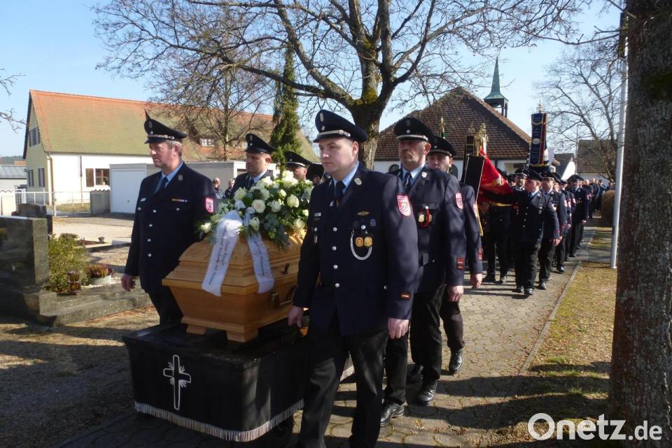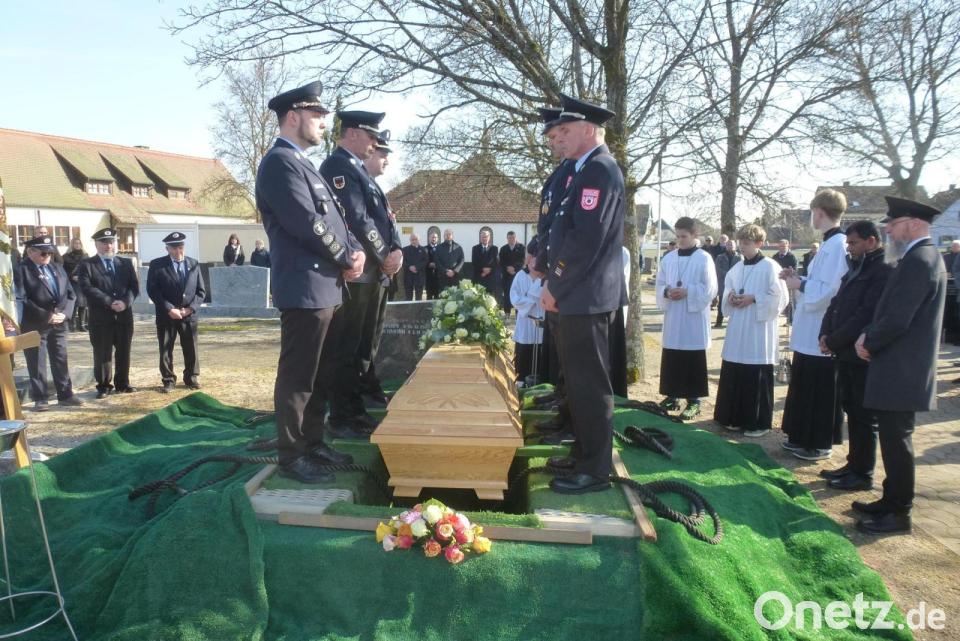 Mit Fahnenabordnungen, Kranzniederlegung und Ehrensalut erwies die Gemeinde ihrem Altbürgermeister die letzte Ehre. Am Grab wurde noch einmal deutlich, wie sehr Georg Härning als bodenständiger, geselliger und zugleich entschlossener Gestalter geschätzt wurde. In christlicher Hoffnung wurde er in Gottes Hände zurückgegeben. Trompeter Hans Rettinger intonierte zum Ehrensalut das Lied "Vom guten Kameraden" und das Feierabendlied.