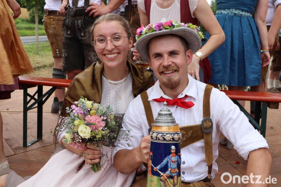 Der schönste Baum aus dem Weißenberger Wald war am Samstag schnell eingeholt und geschmückt, am Abend dann sorgte die Gruppe "Gseea Wespn" bis in die Nacht hinein für Stimmung. Teils mit kleinen Augen und ein bisschen blass machten sich die Kirwapaare dann am Sonntagmorgen auf zum Gottesdienst in der Kirche St. Veit. Nach dem Mittagessen holten die Burschen im Dorf ihre Moidla ein und brachten sie zum Festplatz. Das Austanzen der Paare verfolgten viele Besucher, die auch mit Applaus nicht sparten.