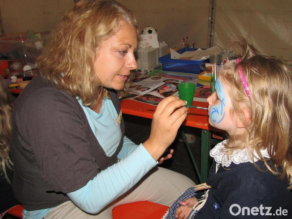 Vom Förderverein des Fatima-Kindergarten waren zwei Schichten zur Betreuung der Kinder zusammengestellt worden. Für jeweils eine Stunde waren Mütter vom Förderverein um die Vorsitzende Alexandra Kraus beim Nachwuchs im Kirwazelt. Sie passten auf, halfen beim Basteln, gaben lobende Kommentare zu den Werken der Kleinen oder waren mit Kinderschminken beschäftigt.