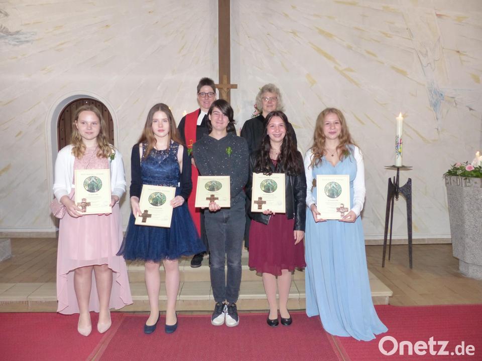 Jasmin John, Jamie Leitner, Anastasia und Samantha Nitz und Lilly Ott wiederholten vor den gesamten Gottesdienstbesuchern ihr Taufversprechen und erhielten am Samstag den Segen, am Sonntag folgten Jonathan Bäumler, Leonie Reichel, Sophie Schadl, Milena Tischler, Kevin Voit und Marie Winkelmann.