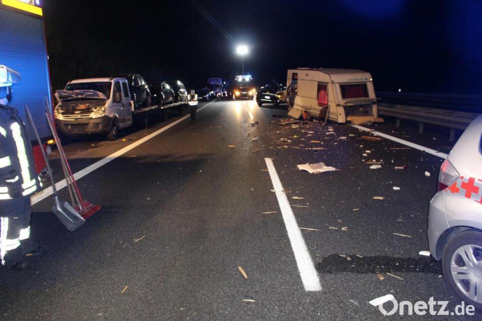 Das unbekannte Zugfahrzeug flüchtete im Anschluss vom Unfallort, ohne sich um den an der Leitplanke entstandenen Schaden zu kümmern und seinen Wohnanhänger abzusichern. Ein nachfolgender Kleintransporter samt Anhänger, beladen mit insgesamt drei Gebrauchtfahrzeugen, übersah den ungesicherten und unbeleuchteten Wohnanhänger und stieß frontal mit diesem zusammen. Der 44-jährige Fahrzeugführer blieb unverletzt. An seinem Fahrzeuggespann, das auf dem Standstreifen zum Stehen kam, entstand Totalschaden. Der Wohnanhänger wurde durch den Zusammenstoß auf den linken Fahrstreifen geschleudert.