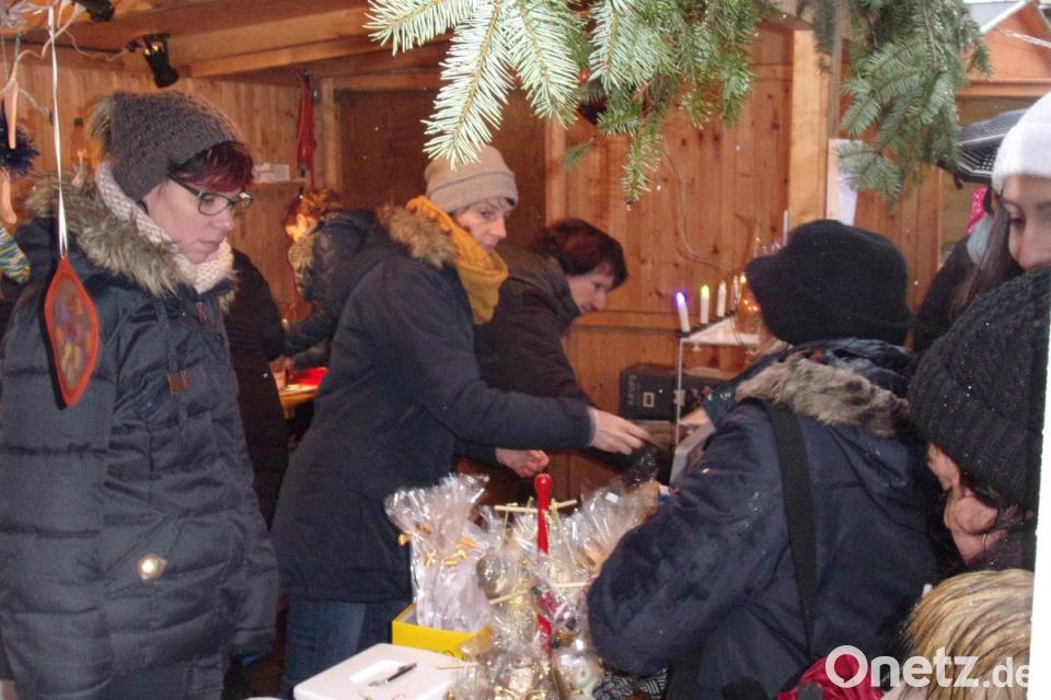 Ein Weihnachtsmarkt ohne Bratwürste und Glühwein wäre nur eine halbe Sache. Dafür sorgten die Buden und Verkaufsstände, die eine vielseitige Auswahl an selbstgebastelten Advents- oder Weihnachtsgestecken zum Kauf anboten oder mit selbstgebackenen Plätzchen, Lebkuchen oder Stollen die „Naschkatzen“ anlockten. Sogar ein speziell gebrauter Winterbock konnte verkostet werden. Unter den aufgestellten Schirmen mussten die Besucher enger zusammenrücken, dadurch kam so manche Unterhaltung in Gange. Die würzig-weihnachtlichen Düfte, die adventlichen Melodien und die Feuerstellen am Marktplatz ließen das Wetter schnell vergessen.
