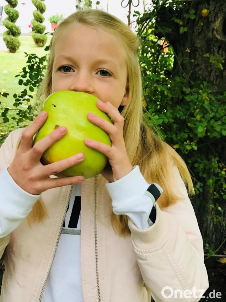 Das Prachtexemplar wuchs im großen Obstgarten der Großeltern, Erich und Hannelore Winter, in der Ortsmitte von Wernberg heran. Den Apfelbaum – eine alte Wintersorte – hat der Urgroßvater 1955 gepflanzt. Die riesigen Äpfel sind saftig, lecker – und natürlich ungespritzt.