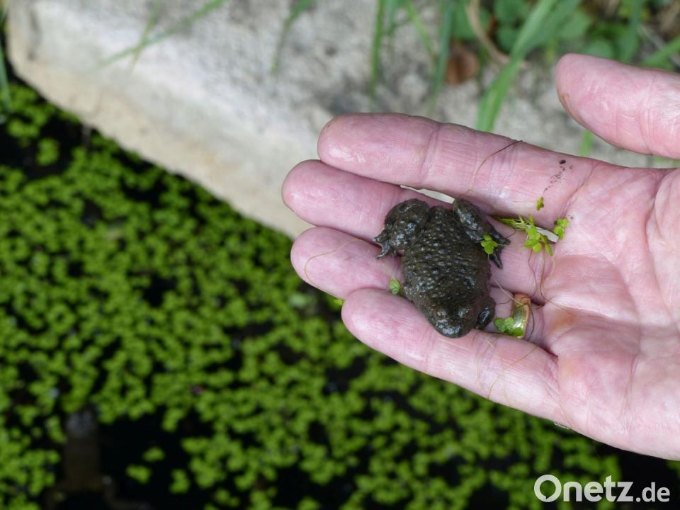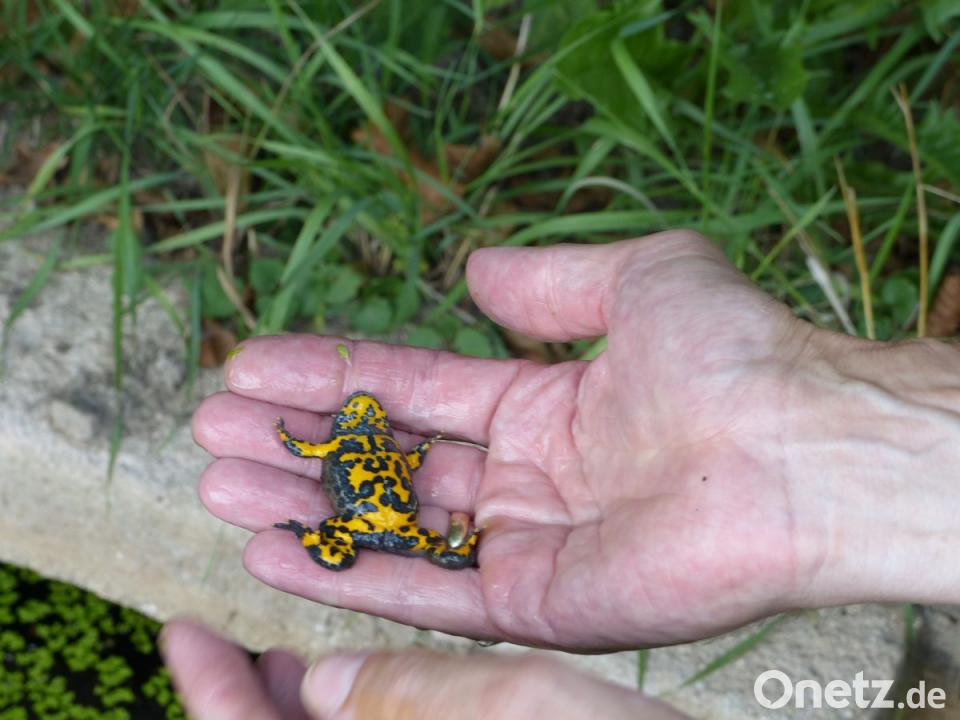 Mit dem Frontlader wurden zwei Becken zu Testzwecken an den Köblitzgraben gebracht und eingesetzt. Zeno Bäumler hatte den Naturpark Oberpfälzer Wald und die Untere Naturschutzbehörde am Landratsamt an seiner Seite. Der Test war ein Erfolg. Inzwischen sind sieben Becken an besonnter Stelle im Abstand von einem Meter "bewohnt". Auf einer Seite bietet ein Grasüberhang noch eine Rückzugsmöglichkeit. Wo die Unken vor dem "Erlöschen" standen, tummeln sich jetzt pro Becken rund 100 Hüpferlinge. "Die Population ist gesichert", freut sich Bäumler. Er ist froh, dass der Landwirt, der die Wiese bewirtschaftet, und die "Staatsforsten" ihn unterstützen. Zeno Bäumler sieht regelmäßig nach dem Rechten. "Das macht ja auch Freude". Das Projekt ist in einem Fachmagazin publiziert. Bäumler stellte Norddeutschen Naturschützern seine Form für ihr Unkenprojekt zur Verfügung. Interessenten meldeten sich aus Passau, aus dem Chiemgau, aus Baden-Württemberg. Inzwischen wird das Becken in ähnlicher Form auch von einem kommerziellen Anbieter vermarktet. "Ziel ist für mich die Populationsdichte und die weitere Ausbreitung", so Zeno Bäumler. Wenn die Unken der Beton-Kinderstube entwachsen sind, haben sie an Land keine Fressfeinde mehr, dann sind sie sicher. Einige Sekunden lässt sich eine Gelbbauchunke von Bäumler auf den Rücken legen und zeigt ihre faszinierende Bauchfärbung - fast, als ob sie wüsste, dass es der Naturschützer gut mit ihr meint. "Das sollte man nicht nachmachen", rät er. Die Berührung ist nicht gefährlich, "doch die Gelbbauchunke kann die Schleimhäute unangenehm reizen. Das nennt man dann Unkenschnupfen".