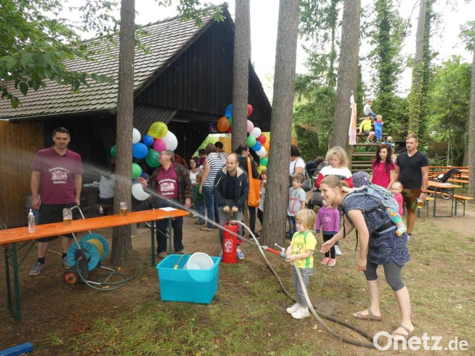 Der Höhepunkt im Jahreszyklus ist das Kinderfest an Maria Himmelfahrt. Es soll an die Einweihung des Platzes vor 42 Jahren erinnern und etwas Geld in die Spielplatzkasse spülen. Auch für die Organisation dieses Festes legten sich die "Spielplatzfreunde" wieder mächtig ins Zeug. Es begann bereits am frühen Vormittag mit einem Frühschoppen mit Weißwürsten und Breze für die Erwachsenen. Zum Mittagstisch gab es dann knusprige Hendl vom Grill. Wer nicht rechtzeitig da war, musste auf andere Speisen ausweichen, so schnell waren die Hendl verzehrt.