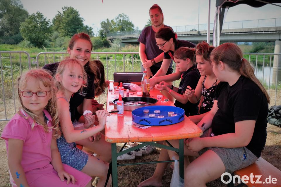 Den Kinder wurde ein tolles Programm geboten. Für die ganz Kleinen hatten die Organisatoren einen großen Sandhaufen mit Spielgeräten und Sonnenschirmen aufgebaut. Spaß machte den Kindern auch die Hüpfburg. Viele Mädchen ließen sich Körper-Tattoos aufmalen oder probierten es hingebungsvoll selbst. Großen Spaß hatten vor allem die Jungen beim Zielspritzen, wo die Blechbüchsen in den Hausfenstern getroffen werden mussten. Gut besucht war die Schießbude. Man konnte mit dem Luftgewehr schießen oder mit Darts auf Luftballons als Ziel werfen. Eine besondere Attraktion war die Bootsfahrt mit einem großen Schlauchboot auf der Naab. Die Teilnehmer durften selbst mitrudern und die Aussicht vom Fluss aus genießen.